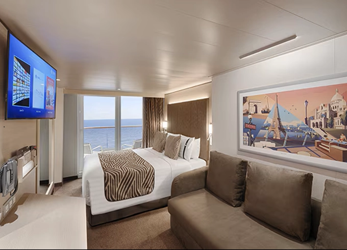 - Ubytovanie v plne vybavenej kajute: vlastná kúpeľňa so sprchou a WC, interaktívna TV, telefón, safe, sušič na vlasy, regulovateľná klimatizácia, minibar (za poplatok). Pripojenie na internet cez Wi-fi (za poplatok)