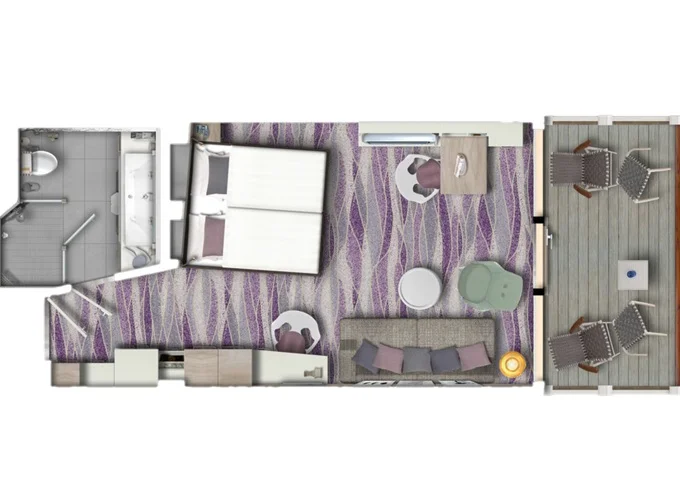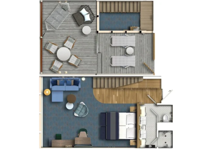SKHO - Himmel & Meer Suite 42 m² + prekrytá terasa 29 m² na poschodí so stolom, ležadlami a s hojdacou sieťou. 14. paluba. Max 4 osoby. Výhody Suite. 19 836 € 4 959 € za osobu