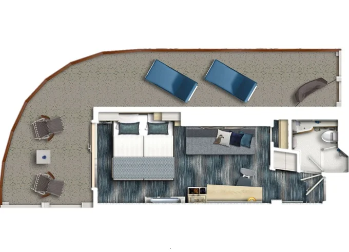 | SUSO - Übersee Suite 40 m² + balkón 9 m² s ležadlami a hojdacou sieťou. 14. paluba. Max 4 osoby. Výhody Suite. | 7 918 € 3 959 € za osobu | ||